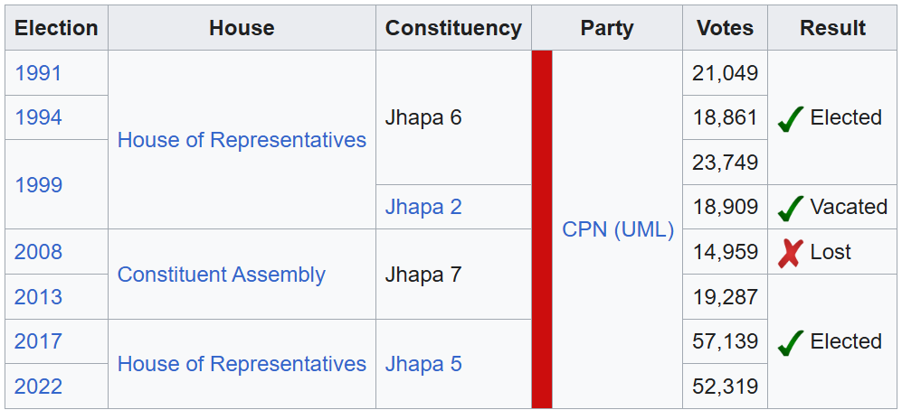 Last Election Contested: House of Representatives, Jhapa-5 (2022 General Election)